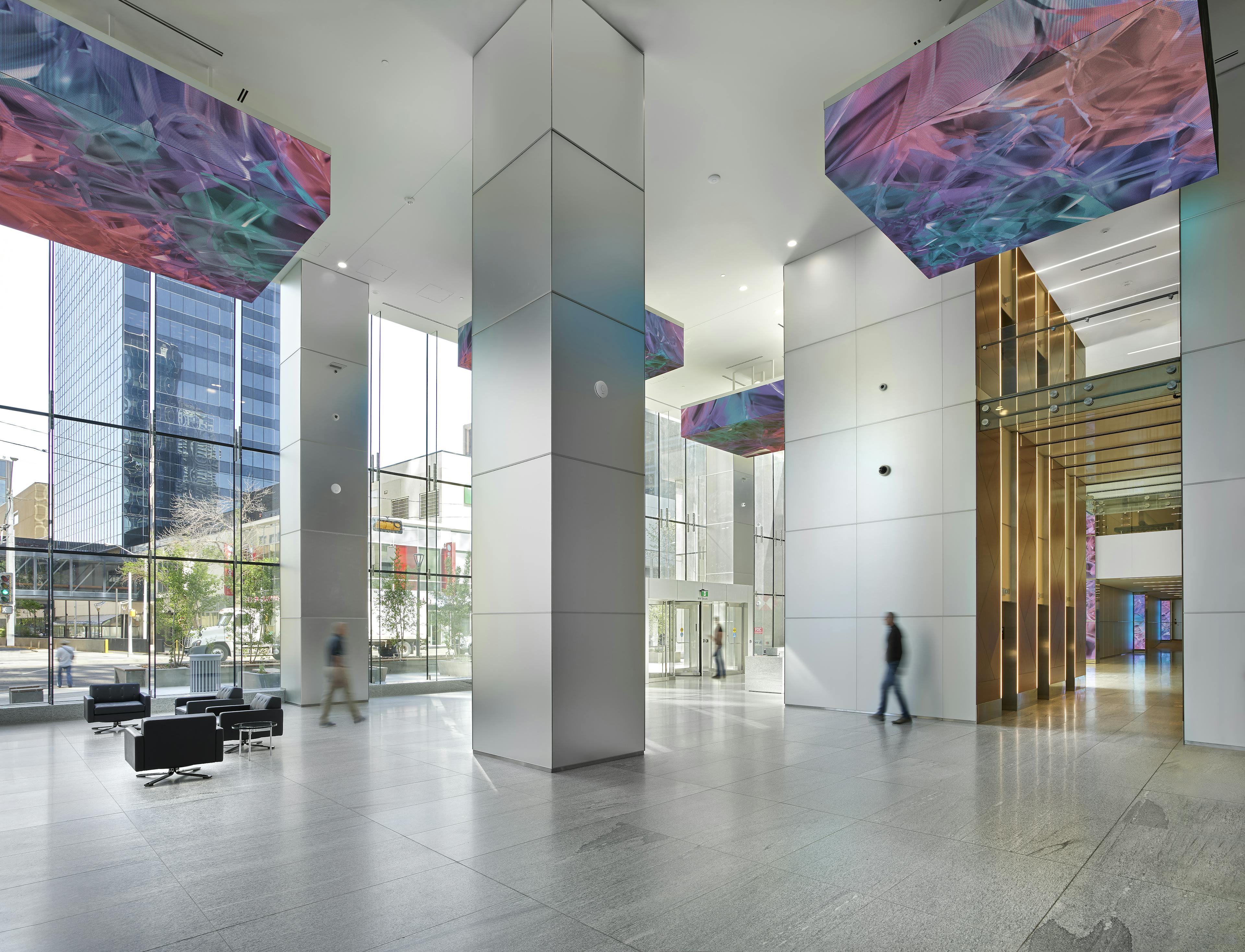 To match Edmonton’s future-forward, cosmopolitan reputation and help transform HSBC Place—home to AIMCo’s headquarters—ESI created the city’s first digital art installation, a striking addition that redefines the building’s lobby experience.